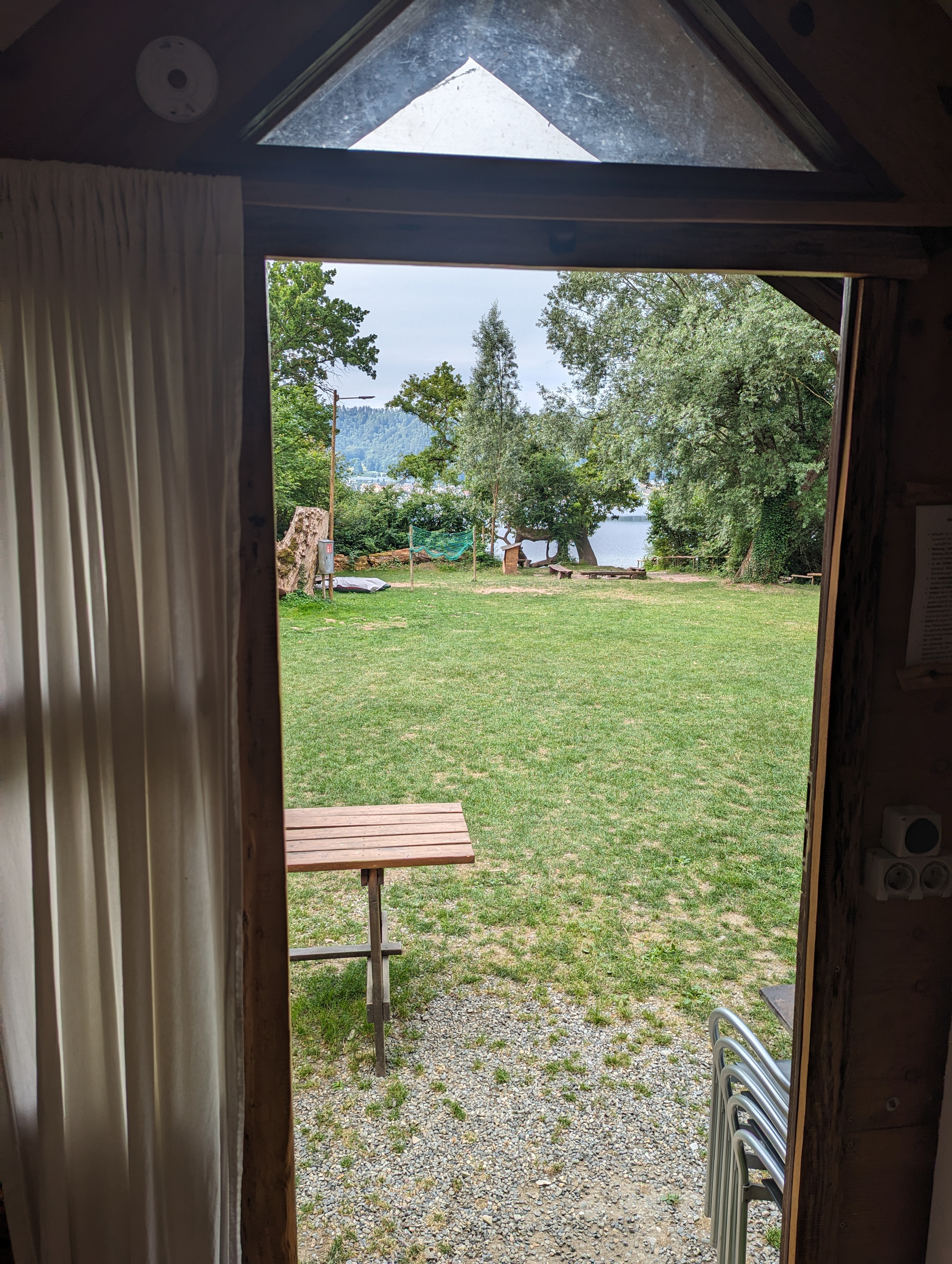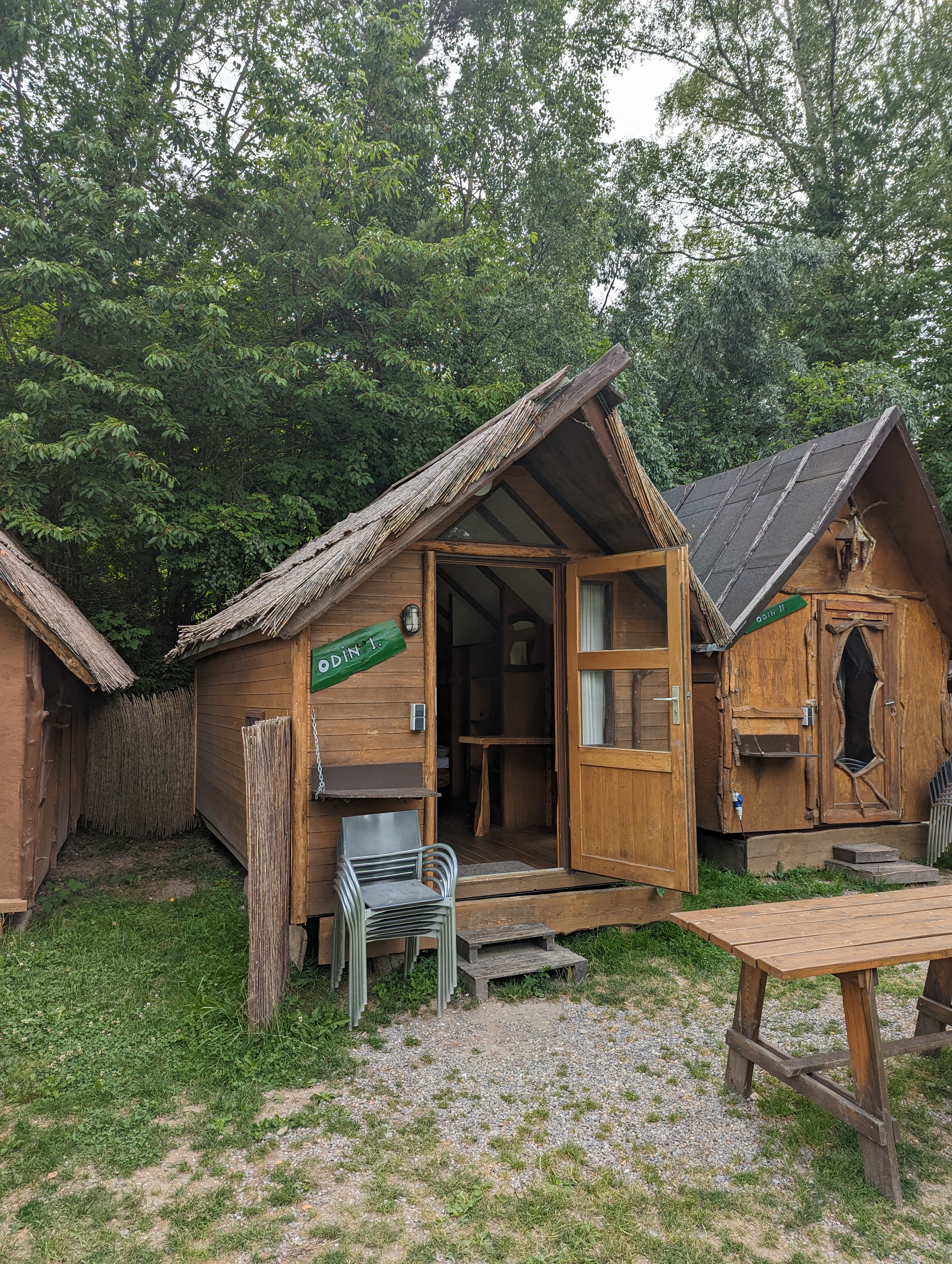 Die Holzhütten haben kein Vorzelt (Holzterrasse)