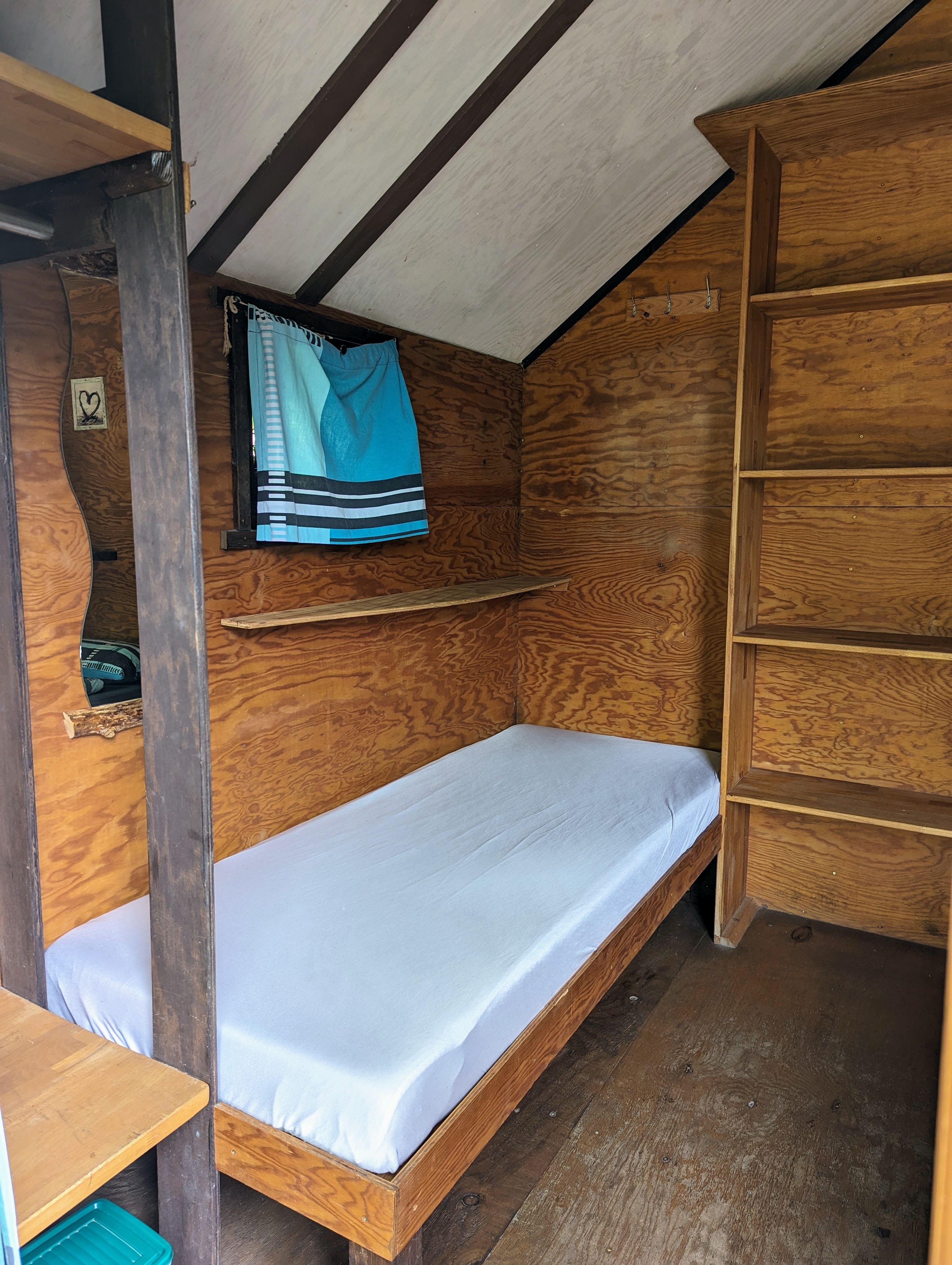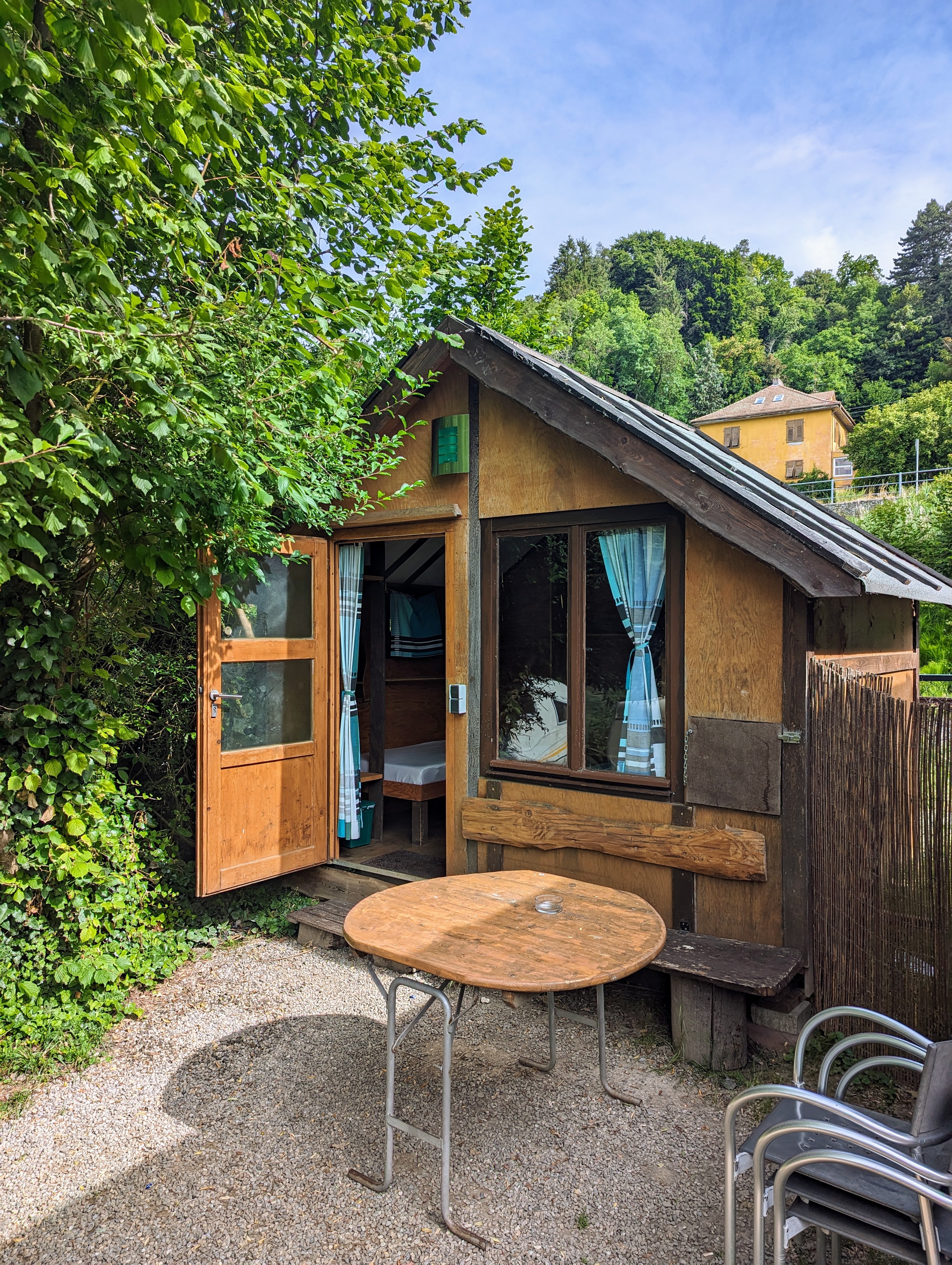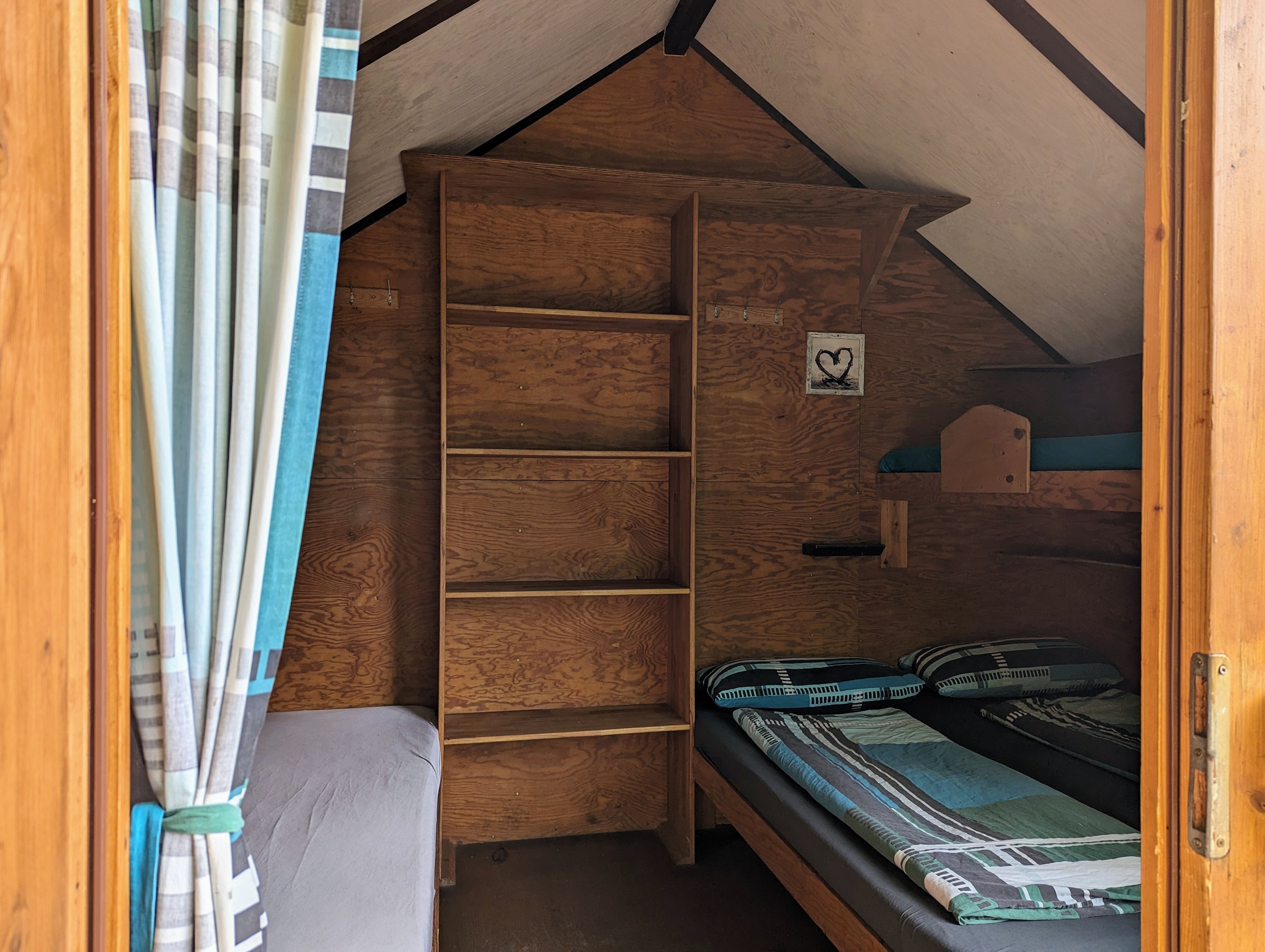 Die Holzhütten haben kein Vorzelt (Holzterrasse)