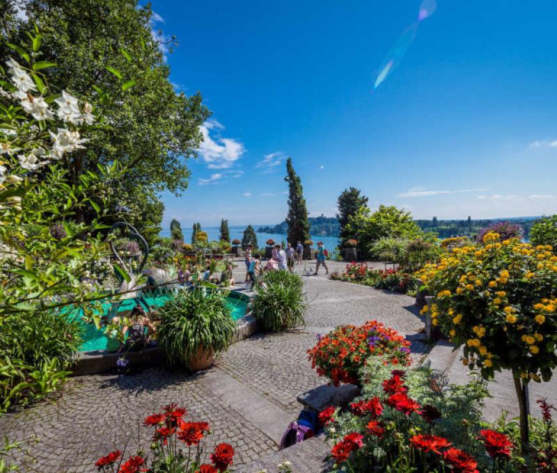 Üppige Blütenpracht das ganze Jahr über, ein Park mit einem über 150 Jahre alten Baumbestand, der barocke Glanz von Schlossanlage und Kirche, dazu der mediterrane Charakter - das ist die Mainau, die Blumeninsel im Bodensee.